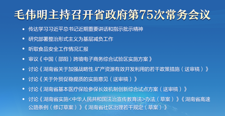 • 毛偉明主持省政府第75次常務(wù)會議 部署醫(yī)保參保、外貿(mào)促穩(wěn)提質(zhì)、礦產(chǎn)資源開發(fā)利用等...
